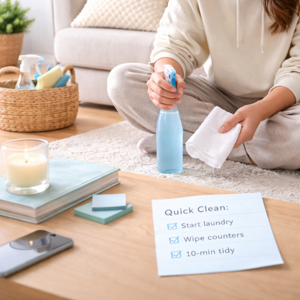 No complicated systems, no perfect-week pressure. Amoria™ turns “I need to clean” into small, clear next steps — so you can build consistency, even on low-energy days.